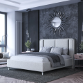 - Определите стиль интерьера. Минимализм и скандинавский — тонкие высокие ножки, светлая ткань. Лофт — металл. Классика — дерево, мягкое изголовье.