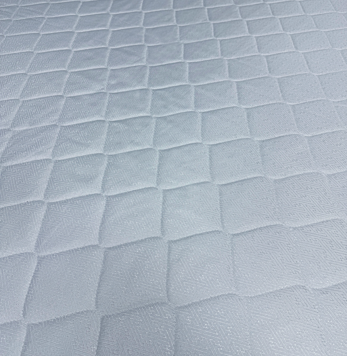 Жаккард белый — это высококачественная ткань, которая является ключевым элементом комфорта любого матраса. Изготовленная из сочетания хлопка и полиэстера, она объединяет мягкость натурального волокна и прочность синтетической нити. Ткань обладает отличными эксплуатационными свойствами: Гипоаллергенность — безопасна для чувствительной кожи. Материал «дышит» — обеспечивает оптимальный микроклимат во время сна. Долговечность — сохраняет форму матраса и внешний вид при длительном использовании.