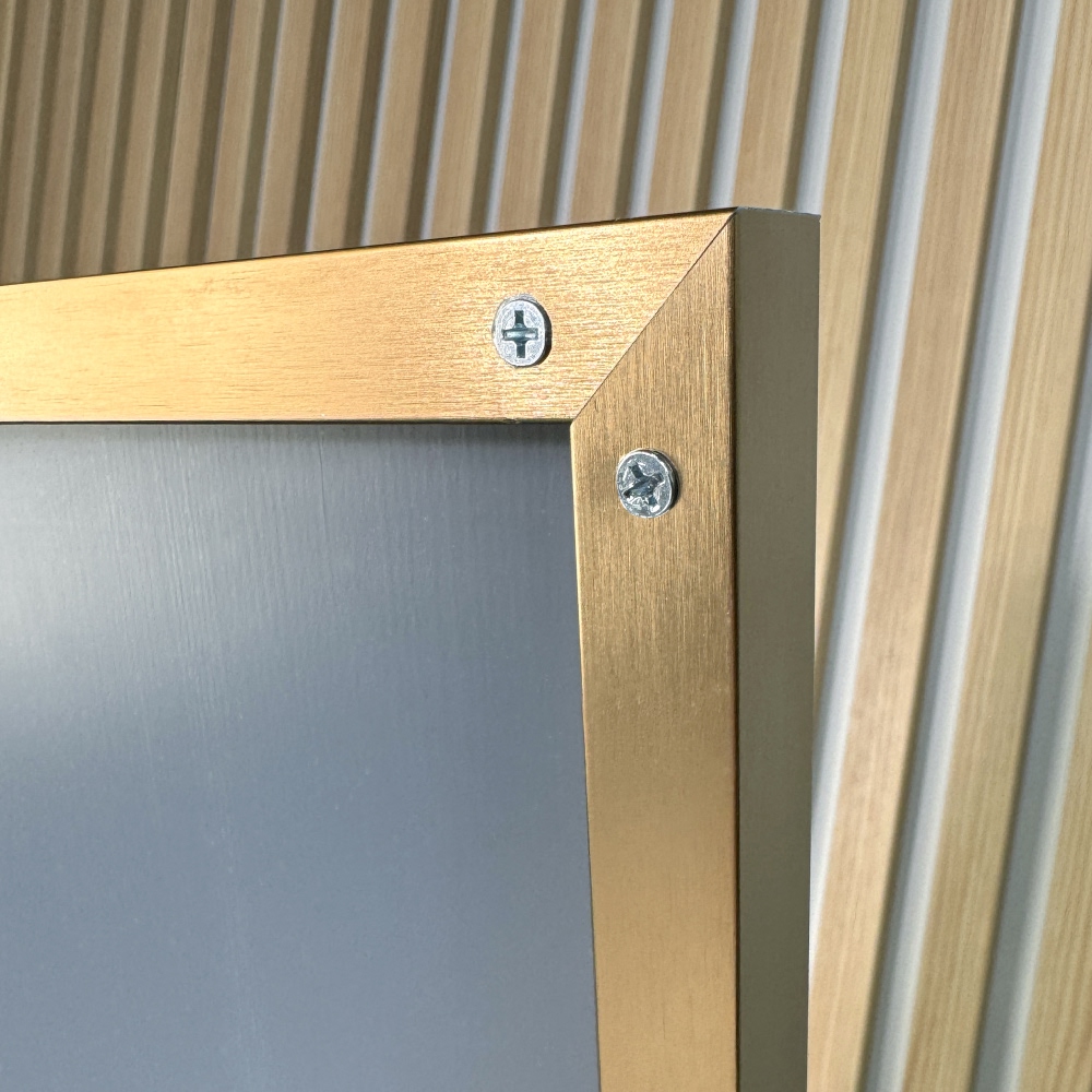 Рамка из первичного анодированного алюминия. В отличие от порошковой покраски устойчива к царапинам и не выцветает с течением времени. Ширина профиля по лицевой стороне 5 мм, ширина профильной стороны - 20 мм. - АРМИРУЮЩАЯ ЗАЩИТНАЯ ПЛЕНКА