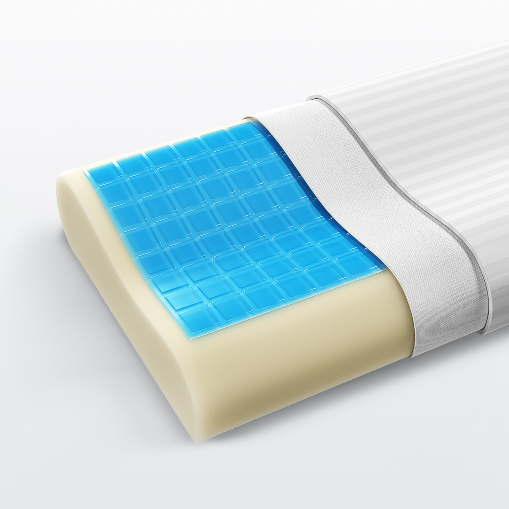 Подушка ортопедической формы с охлаждающим гелем «Aquagel». Особый состав геля сохраняет изначальную температуру и не нагревается в первые несколько минут использования подушки. Приятная прохлада способствует расслаблению и переход в быструю фазу сна будет комфортным и более эффективным. Чехол всех моделей подушек выполнен из хлопкового страйп-сатина. Эта натуральная ткань, используемая для качественного постельного белья, прекрасно дышит, и обеспечивает отличный воздухообмен.