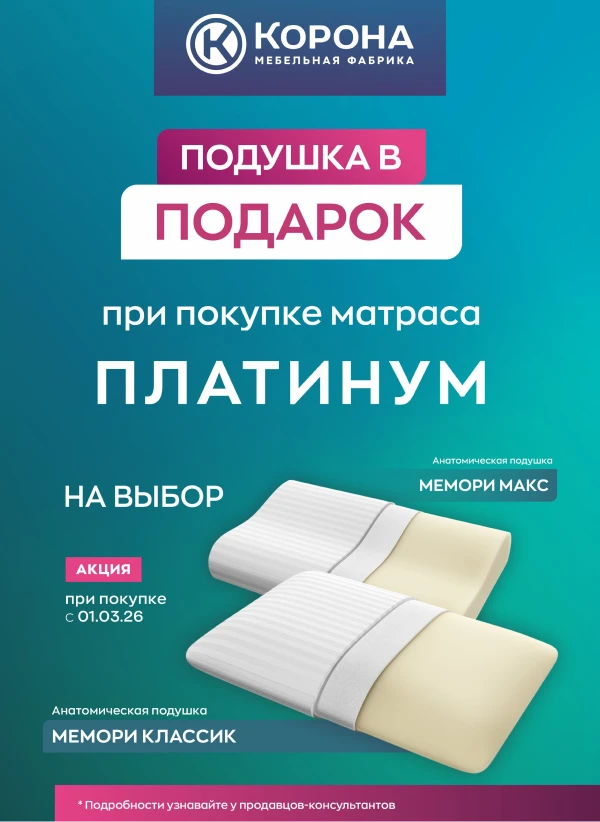 С 01.03.2026 при покупке матраса любой модели серии «ПЛАТИНУМ»